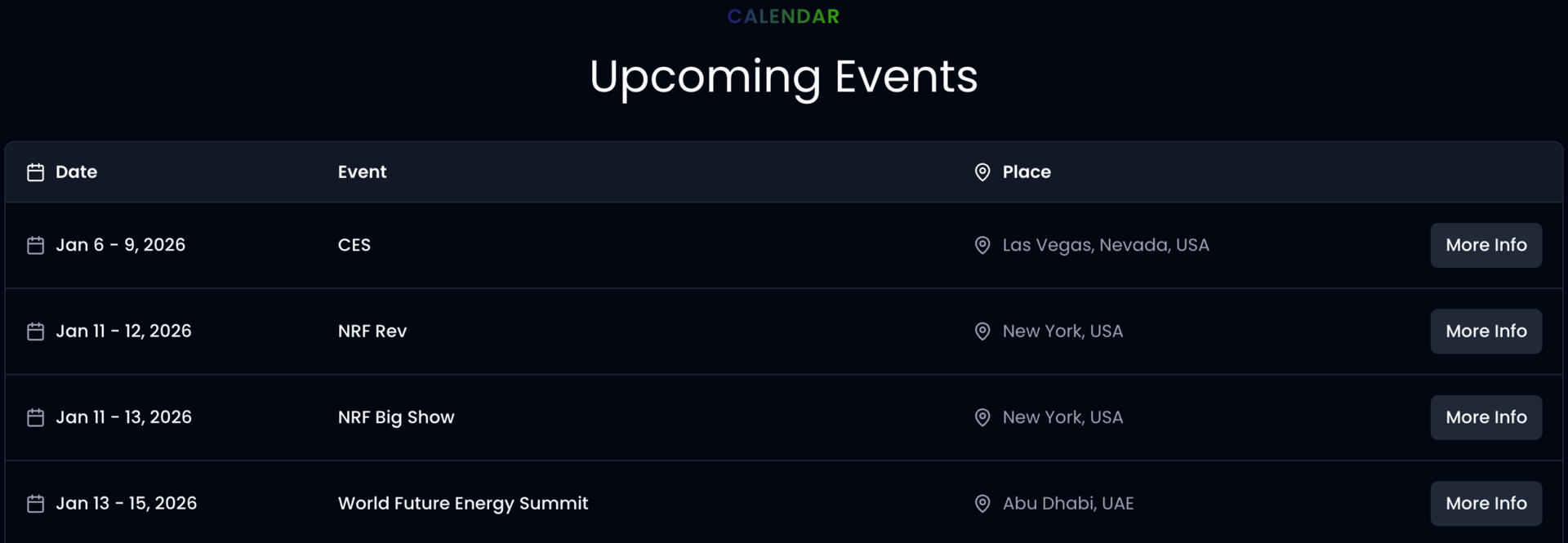 We’re not quite ready to open it up just yet, so for now here’s a snapshot of the key industry events taking place over the next two weeks. Consider this a sneak peek at how the new calendar will look, with a few final tweaks still to come: