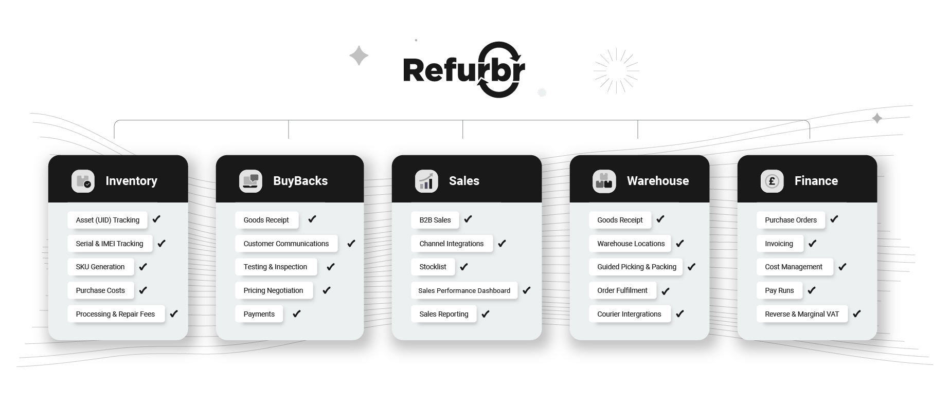 Refurbr acts as the operating backbone of a refurbishment business, bringing every stage of the lifecycle into a single system to support scalable growth.